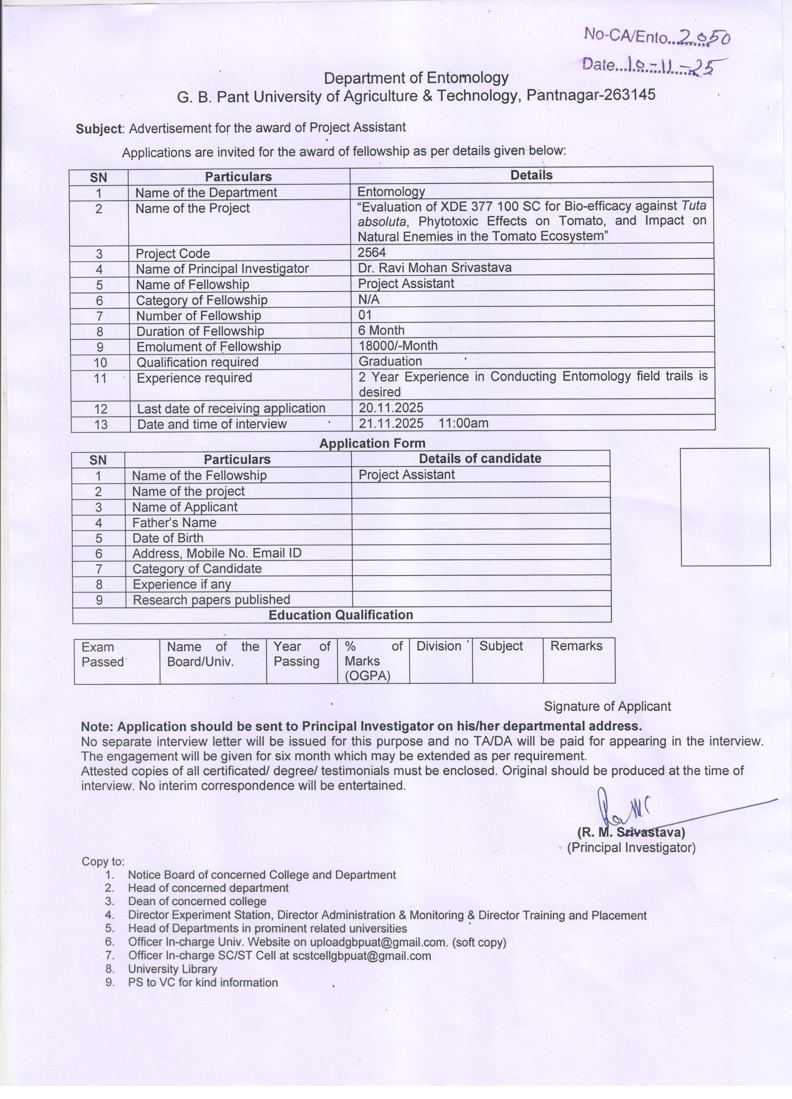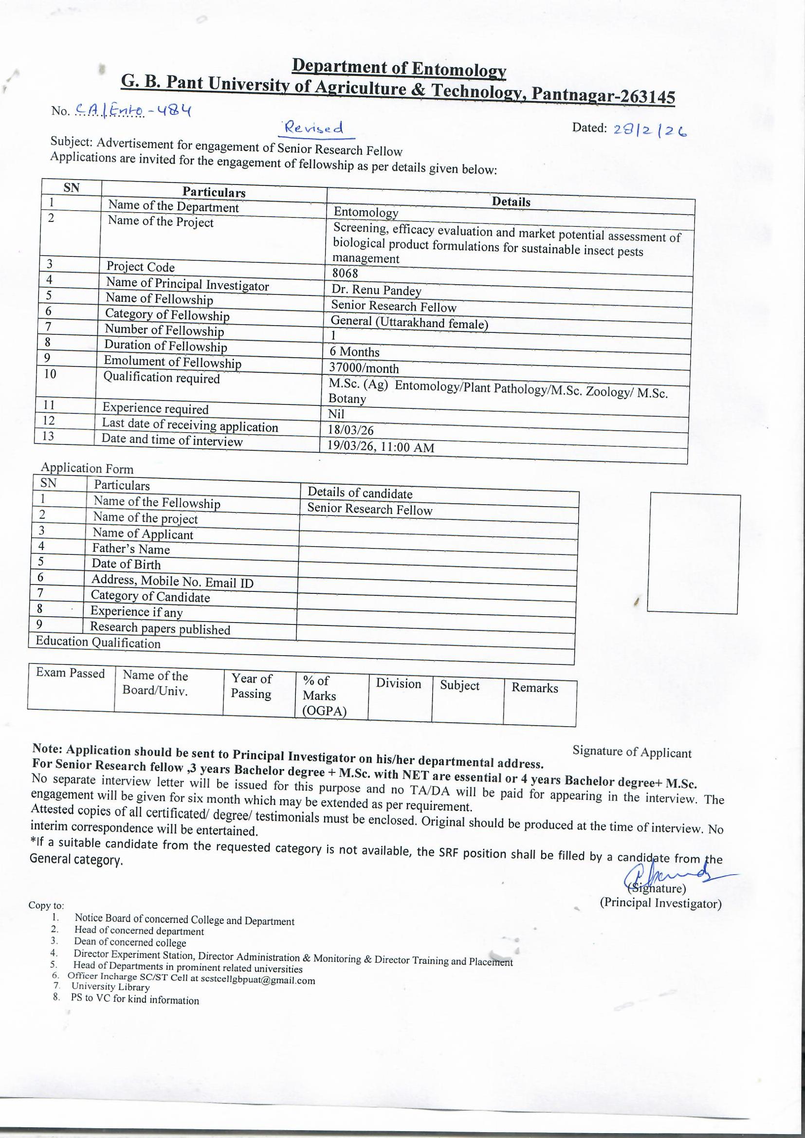 Advertisement for the award of SRF Due to some unavoidable circumstances the interview for the post of SRF which was scheduled on 11.09.2025 has been cancelled.