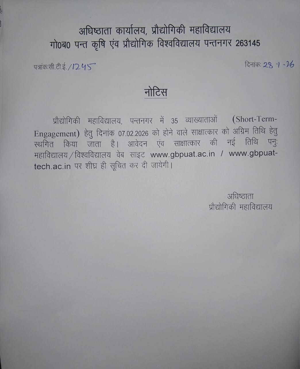 प्रौद्योगिकी महाविद्यालय में सत्र 2025-26 हेतु व्याख्याताओं ( Short-Term-Engagement )नियुक्ति हेतु सूचना Application Format