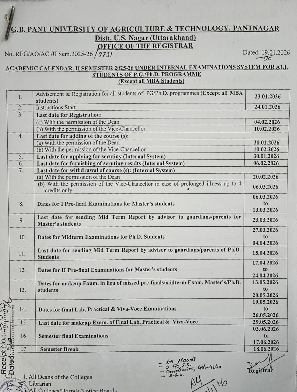 - Academic Calendar, II Semester 2025-26 for students of PG/Ph.D. programmes (Except all MBA students)