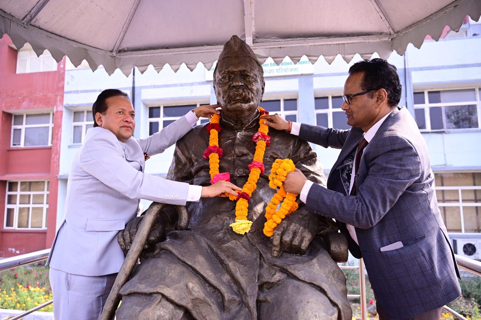 पशु चिकित्सा एवं पशुपालन विज्ञान महाविद्यालय के प्रथम अधिष्ठाता डा. एम. आर. ढांडा की प्रतिमा का अनावरण