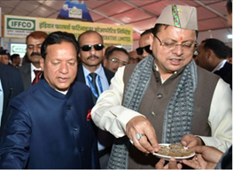 Honourable Chief Minister, Uttarakhand, Shri Pushkar Singh Dhami ji tasting Mandua-lassi (Finger millet lassi) and Mandua-burfi (Finger millet burfi)