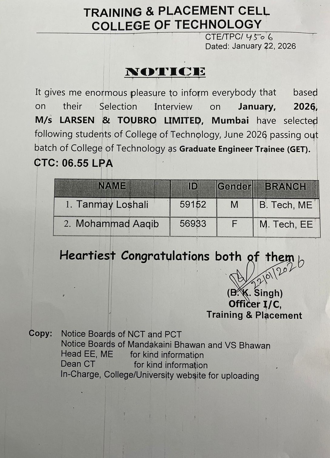 विश्वविद्यालय के विद्यार्थियों का प्रतिष्ठित कंपनी में चयन
