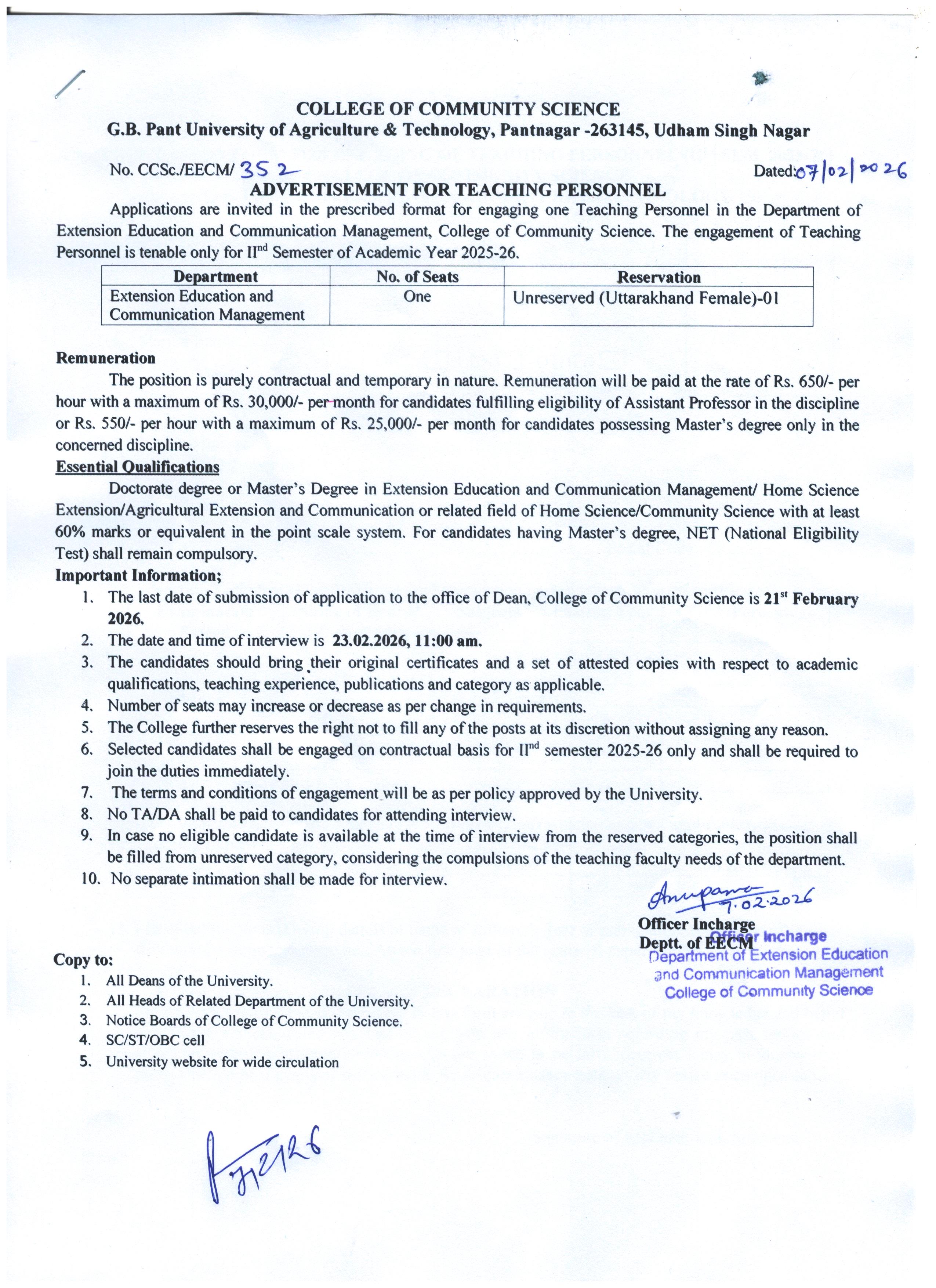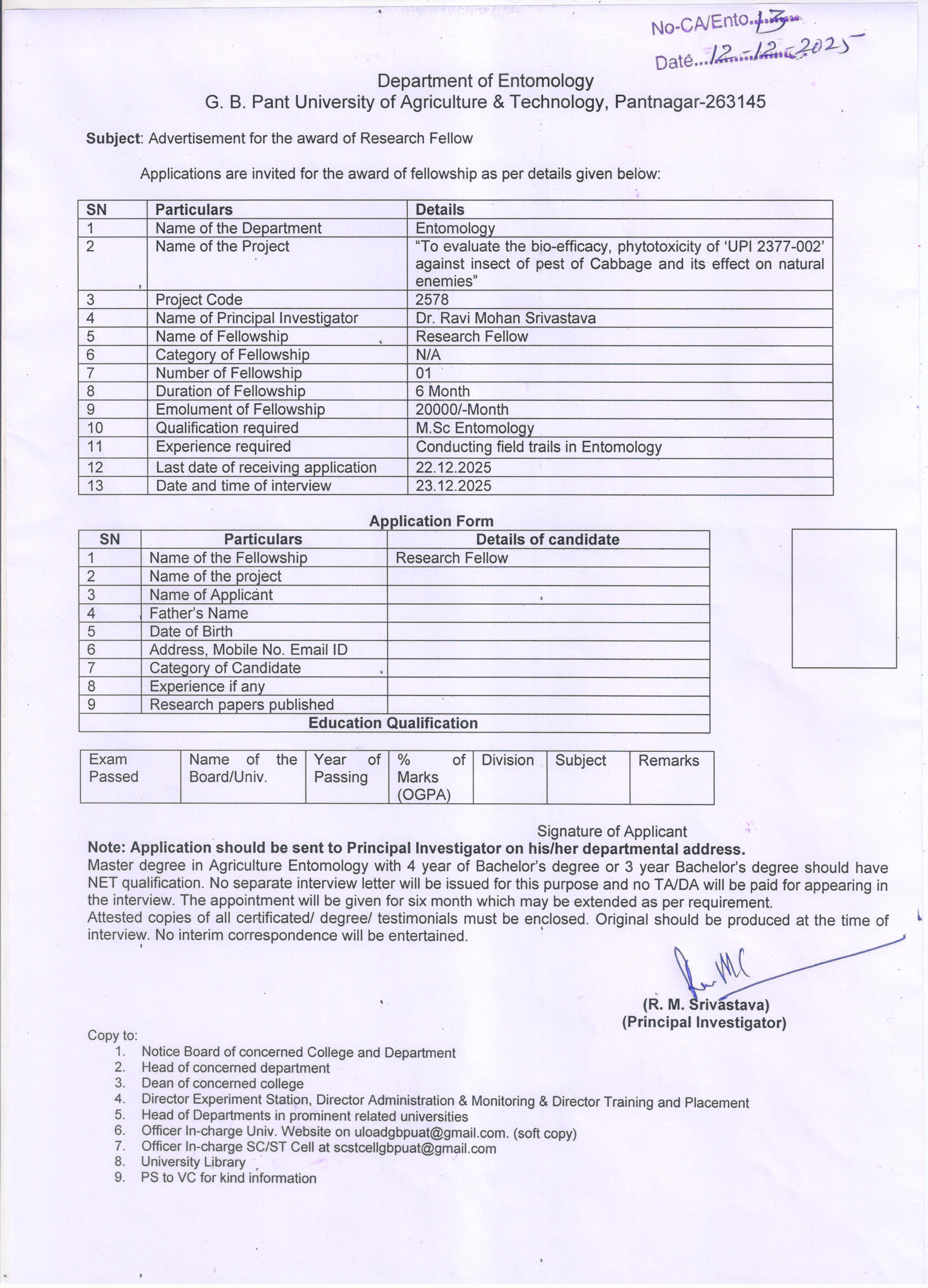 Advertisement for the award of SRF Due to some unavoidable circumstances the interview for the post of SRF which was scheduled on 11.09.2025 has been cancelled.