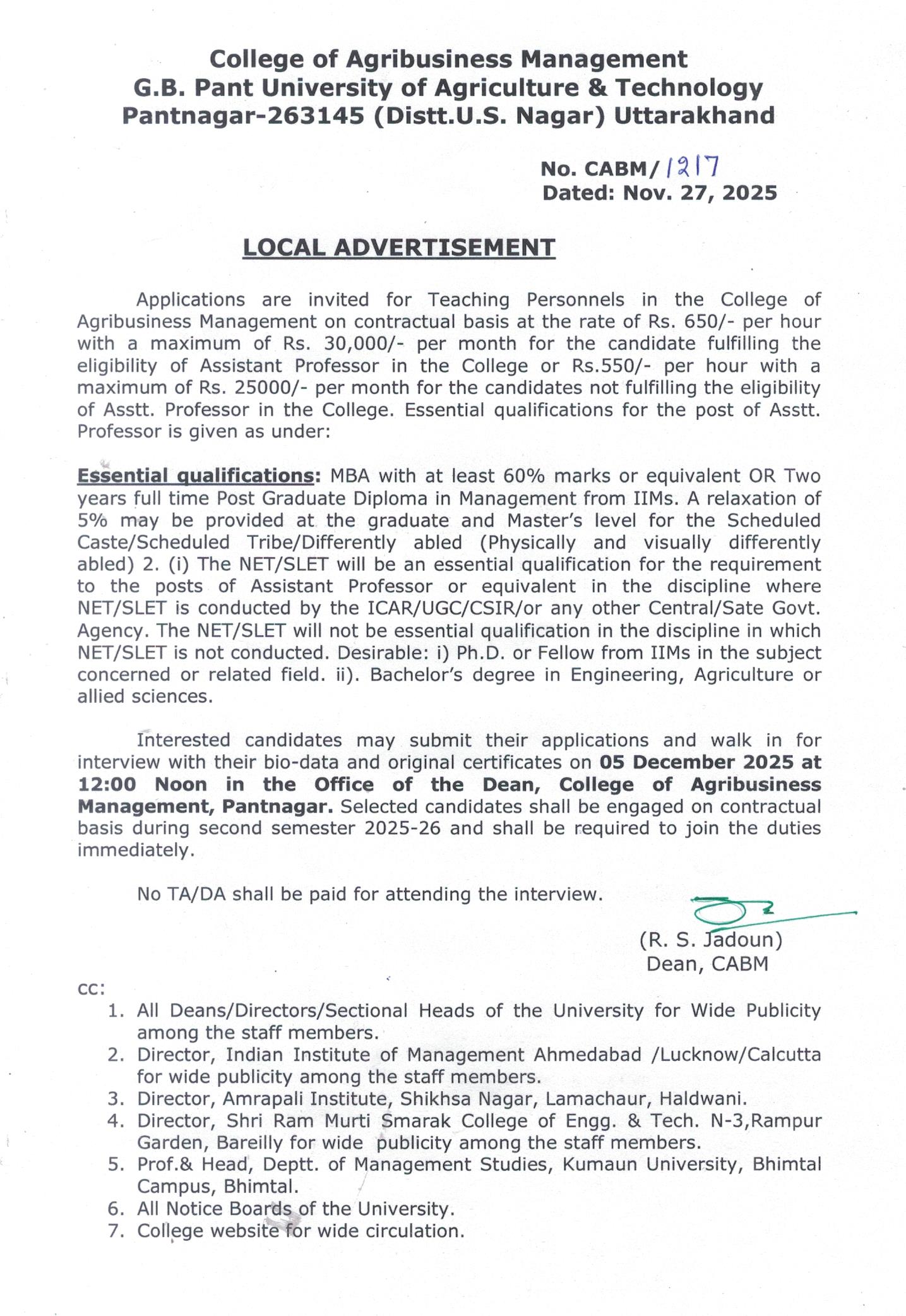 GOVIND BALLABH PANT UNIVERSITY OF AGRICULTURE & TECHNOLOGY