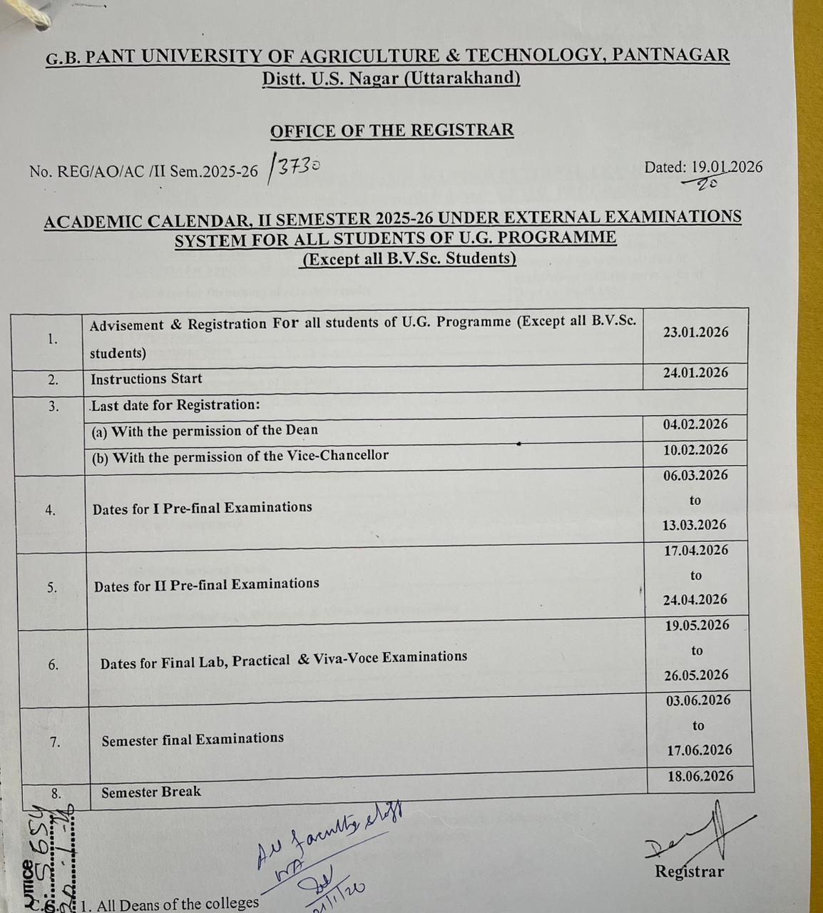 - Academic Calendar, I Semester 2025-26 for students of UG programme (Except all B.V.Sc. students)